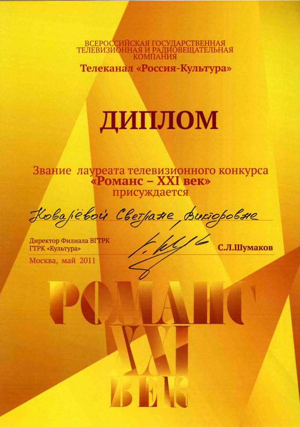 Главная награда для авторов – участие сочинённых ими романсов в финальном концерте, который телеканал «Россия - Культура» покажет 28 мая в 19:05. Участники конкурса приехали из Ростова-на-Дону, Сыктывкара, Сочи, Златоуста, Старого Оскола, Екатеринбурга, Симферополя, Санкт-Петербурга и Москвы.