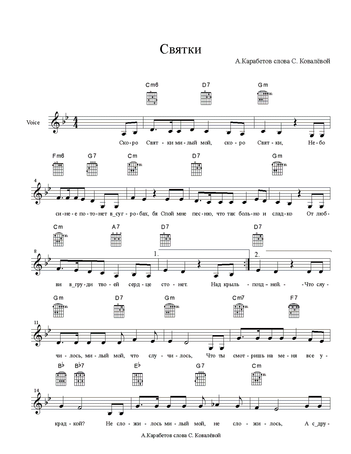 Ноты "Скоро Святки" А. Карабетов Стр.1