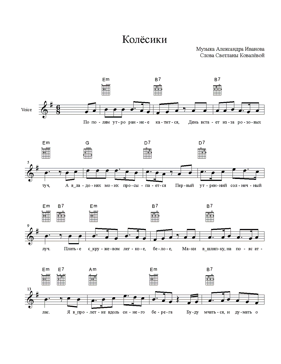 По полям утро раннее катится, День встает из-за розовых туч, А в ладонях моих просыпается Первый утренний солнечный луч. Платье с кружевом легкое, белое, Маки в шляпку, на пояс атлас. Я в пролетке вдоль синего берега Буду мчаться, и думать о Вас Припев: Пусть колесики крутятся, крутятся По извилистой тропке судьбы, Надо мной пташка Божья закружится, Полетит вслед за мной, полетит. Вспомню жизни дорогу, что пройдена, Непростая ее колея. Вся на сердце рубцами проложена, Удалая дорога моя. Я помчусь мимо рощи березовой, Ветер сдует с пути воронье, Глаз прищурив на облачке розовом, Улыбнется мне счастье мое. Припев: Пусть колесики крутятся, крутятся По извилистой тропке судьбы, Надо мной пташка Божья закружится, Полетит вслед за мной, полетит.