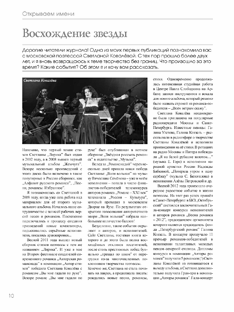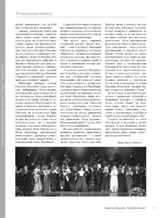 О каждой из этих ярких музыкальных индивидуальностей, в созвездии которых я оказалась, хотелось бы написать много восторженных слов, но формат статьи ограничивает. Мне выпала честь открывать московский концерт „Волей вольной”, а ещё я искренне благодарна Светлане за доверенную мне песню „Воронёнок”, которую она написала специально для сына. Все исполни-тели и музыканты вложили талант и сердце в московский концерт-презентацию Светланы!